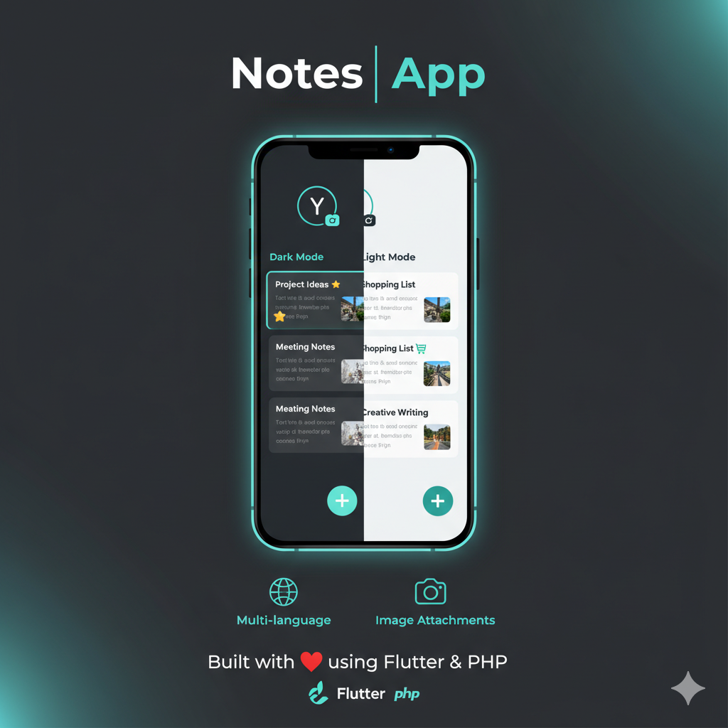 - Developed a full-stack notes application with Flutter frontend and PHP/MySQL backend