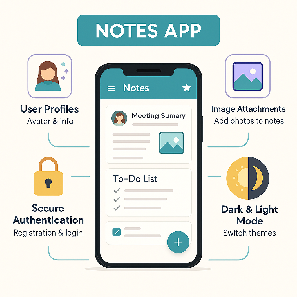 - Implemented secure authentication, user profiles, and file uploads (notes & profile images)